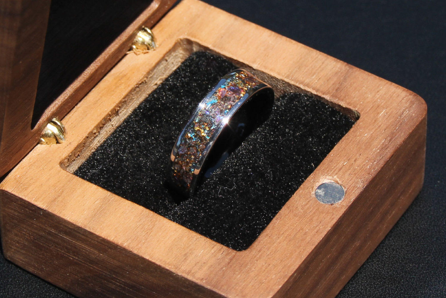 Choose from a variety of ring styles, sizes, and finishes to create a piece that truly reflects your connection. Whether incorporating ashes, sand, dried flowers, or other meaningful elements, your custom inlay will be crafted with care and precision.